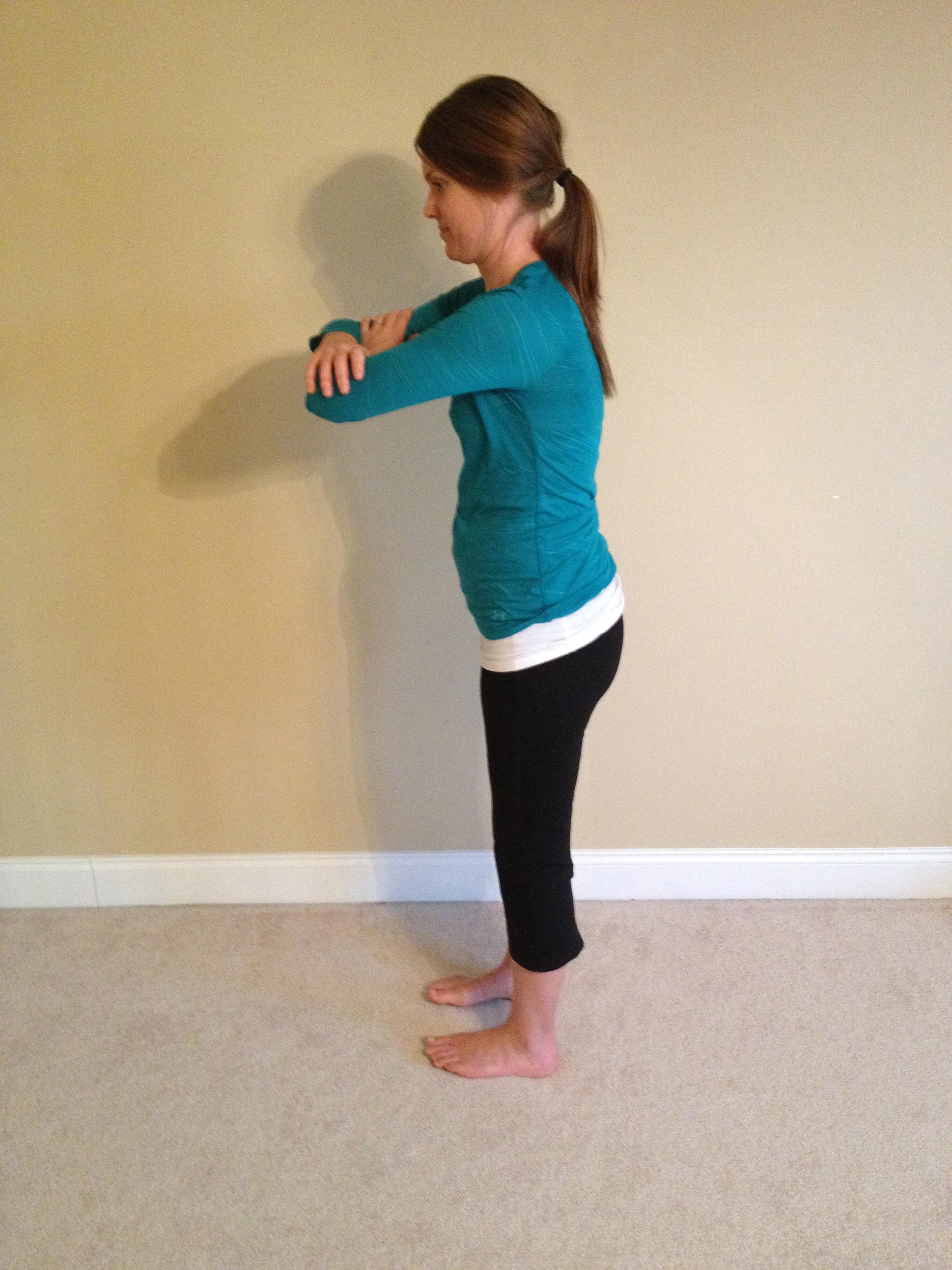 Don’t panic! I know, it’s alarming when you see how far forward your head is. The good news is you can make changes with some hard work. Resist the urge to lift your chest/ribs to “fix” this problem! It will look better in the short term but will not solve the problem. When the ribs are down in their aligned position, it reveals all the tension in the upper body that we typically hide by lifting the chest/ribs. Instead of hiding the problem, use the two exercises below to start correcting it.