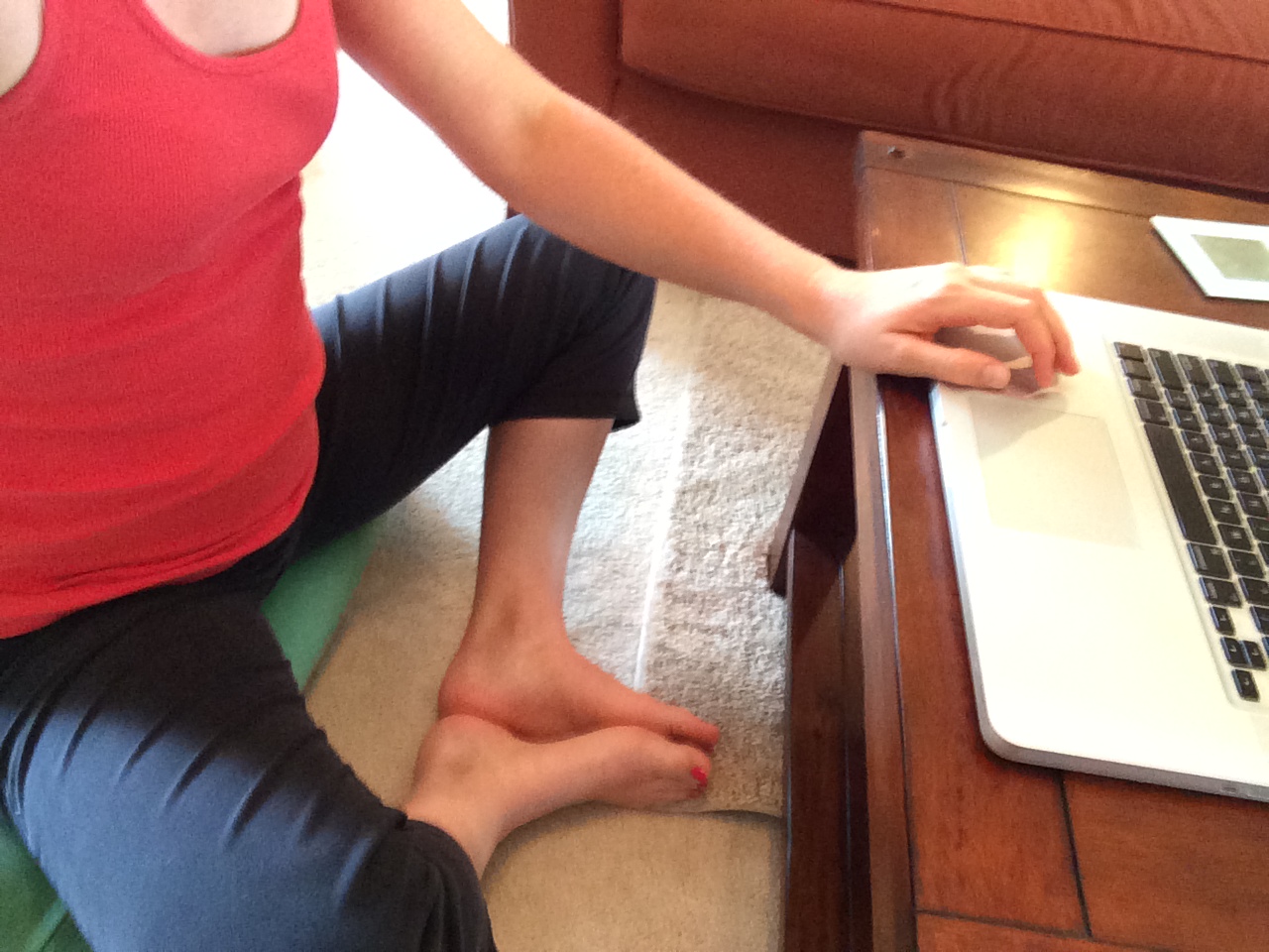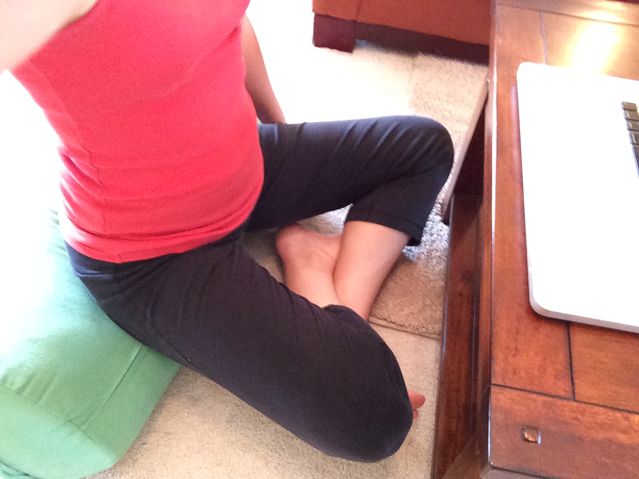 - Sit in a variety of positions. I like to sit on the floor and put my food/computer/bills/etc on the coffee table. If your hips are really tight (like mine), try sitting with your hips elevated to help get your pelvis neutral. These are some of my favorites: