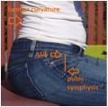 When sitting with a neutral pelvis, the ASIS and Pubic Symphysis are stacked vertically. You will have your natural lumbar curve (called lordosis). - Sit with a neutral pelvis. You know when a little kid sits on your lap and their “butt bones” dig into your thigh? Those are called the ischial tuberosities (or sitz bones), and you want to sit up on those rather than on your sacrum (tailbone). See picture on the right. (Thanks to Susanne at Kangaroo Fitness for the great photo.)