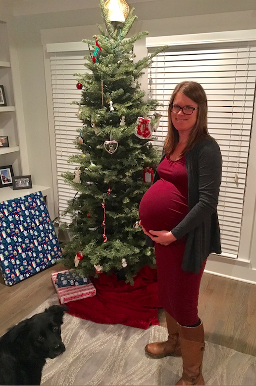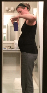 I’m going to get real here.  One of these photos was taken when I was 3 months pregnant. The other was taken at 3 months postpartum. Can you tell which is which?